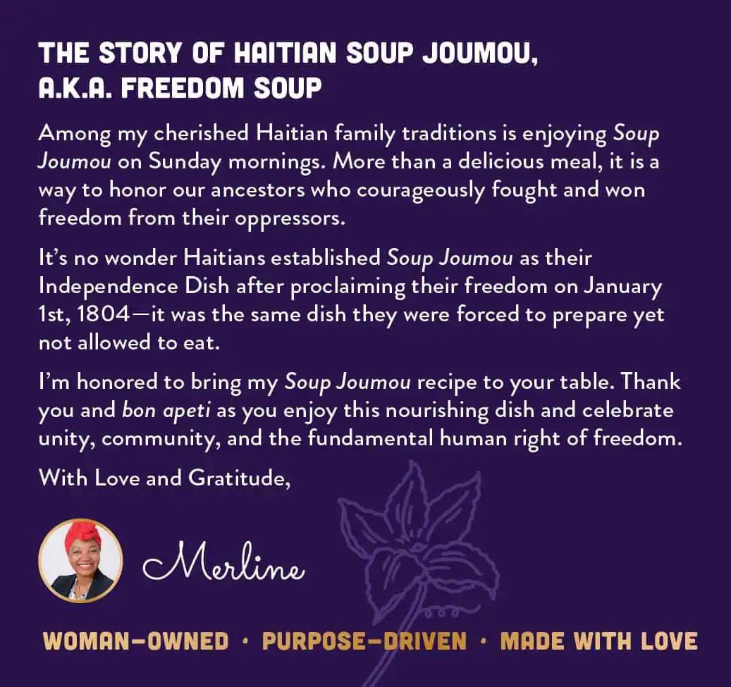 Haitian Freedom Soup — a cherished tradition honoring ancestors who fought for freedom. Established as Haiti's Independence Dish after proclaiming freedom on January 1st, 1804. Free shipping.